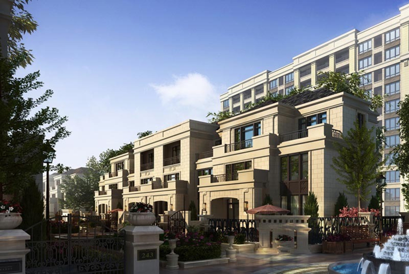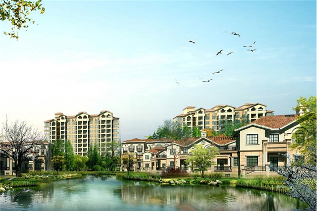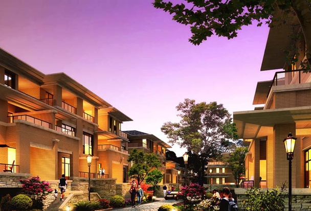 金山中銳龍灣1號別墅別墅裝修設計: 中銳龍灣1號主要以雙拼聯排別墅為主,輔以少量多層和小高層的高檔居住區。 建筑風格以新古典主義為主,景觀設計以東南亞風格為特色??v向天然河道擯河綠化帶貫穿小區,中心綠地結合主要橫向景觀大道使小區景觀與建筑有機結合在一起。